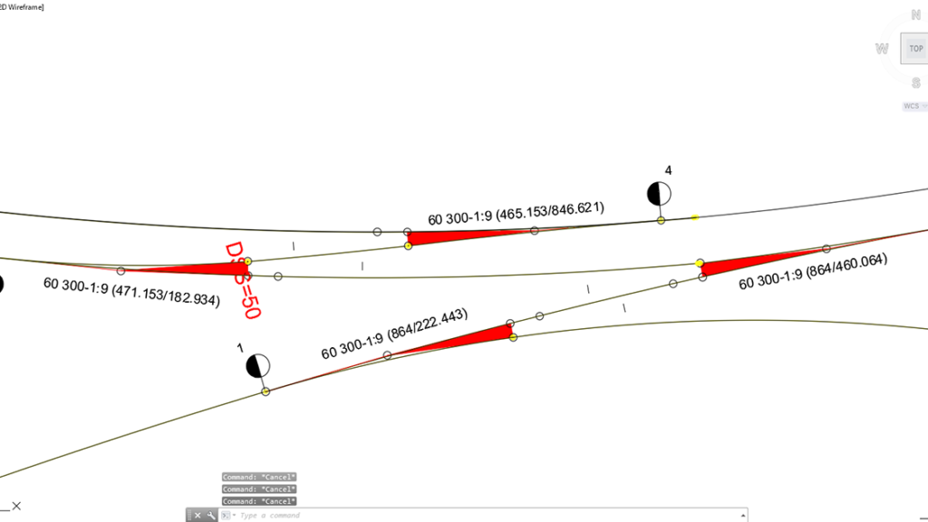 W projektowaniu rozjazdów można skorzystać z automatycznego wstawiania rozjazdów, edycji parametrów rozjazdu i automatycznej zmiany położenia rozjazdu w przypadku zmian geometrii wyrównania. Uwzględniono różne typy rozjazdów: rozjazdy liniowe (nieprzeliczalne), rozjazdy łukowe, symetryczne i rozjazdowe. Oprócz wstępnie zdefiniowanej geometrii rozjazdów, katalog rozjazdów zapewnia użytkownikom możliwość edycji lub dodawania niestandardowych rozjazdów geometrycznych. Raporty rozjazdów zapewniają użytkownikowi narzędzia do wyświetlania parametrów i wartości rozjazdów w tabelach, zarówno na rysunku, jak i w zewnętrznych plikach tabel.