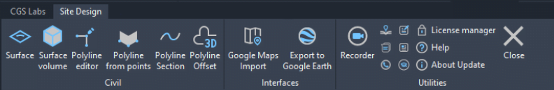 Narzędzie do tworzenia powierzchni jest zawarte w oprogramowaniu CGS Labs do tworzenia szczegółowego cyfrowego modelu terenu (DTM) na podstawie różnych pomiarów lub innych danych wejściowych: plików danych tachimetru, punktów, linii łamania, bloków itp. Daje to możliwość korzystania z Plateia na zwykłym AutoCAD lub BricsCAD. Plateia obsługuje również powierzchnie z Civil 3D i BricsCAD (V20 lub nowsze).